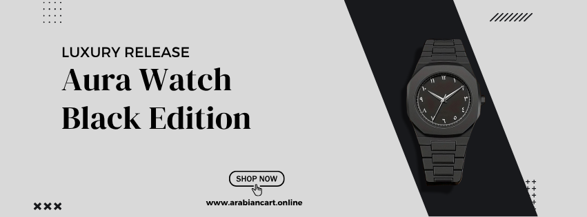 Arabic Black Aura Watch atย Arabian Cart Designed for modern individuals who appreciate timeless fashion.